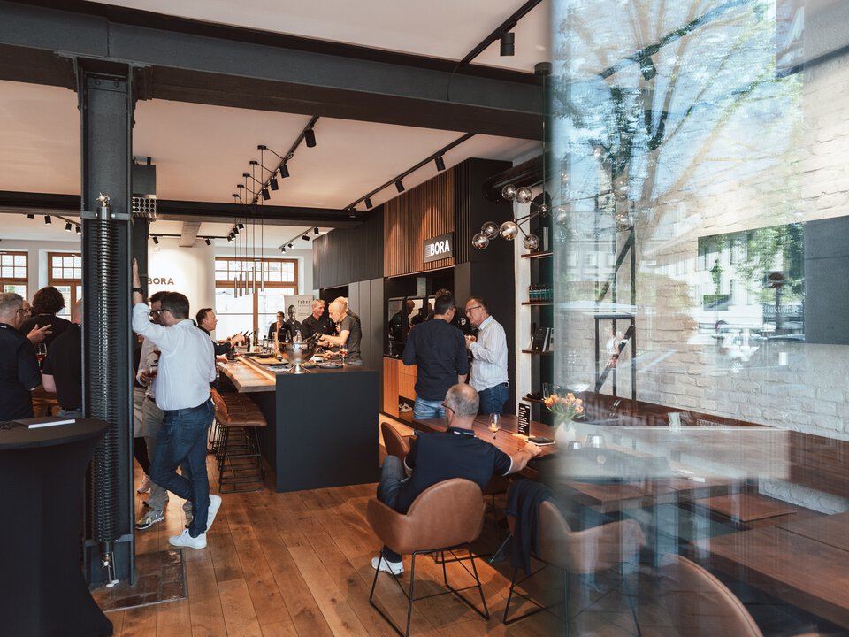 Nous vous transmettons notre expertise avec professionnalisme et bonne humeur, dans un mélange équilibré de théorie et de pratique. Nous vous présentons l’histoire passionnante de l’entreprise et tout ce qu'il faut savoir sur les principes de fonctionnement et autres détails d’agencement de nos produits. Vous expérimentez ensuite les produits BORA en direct pour en constater les avantages par vous-même dans l’atmosphère conviviale d’une soirée culinaire.